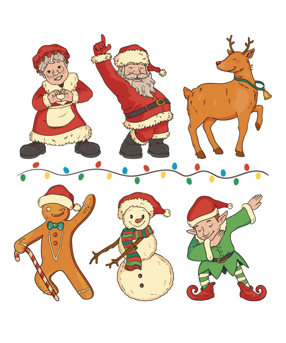 DTF Transfer – 11" Wide Full Color Print Christmas Characters Dancing