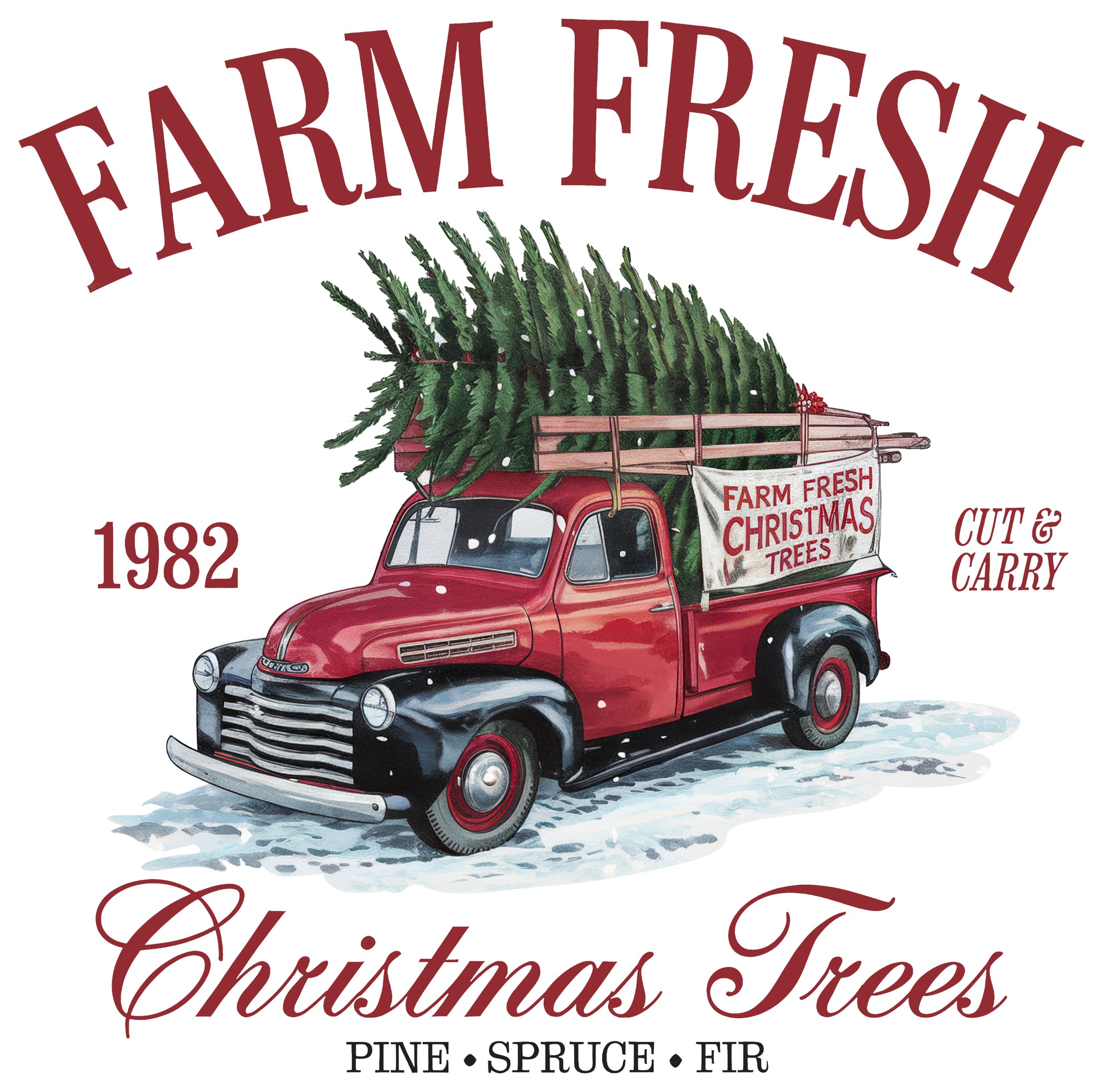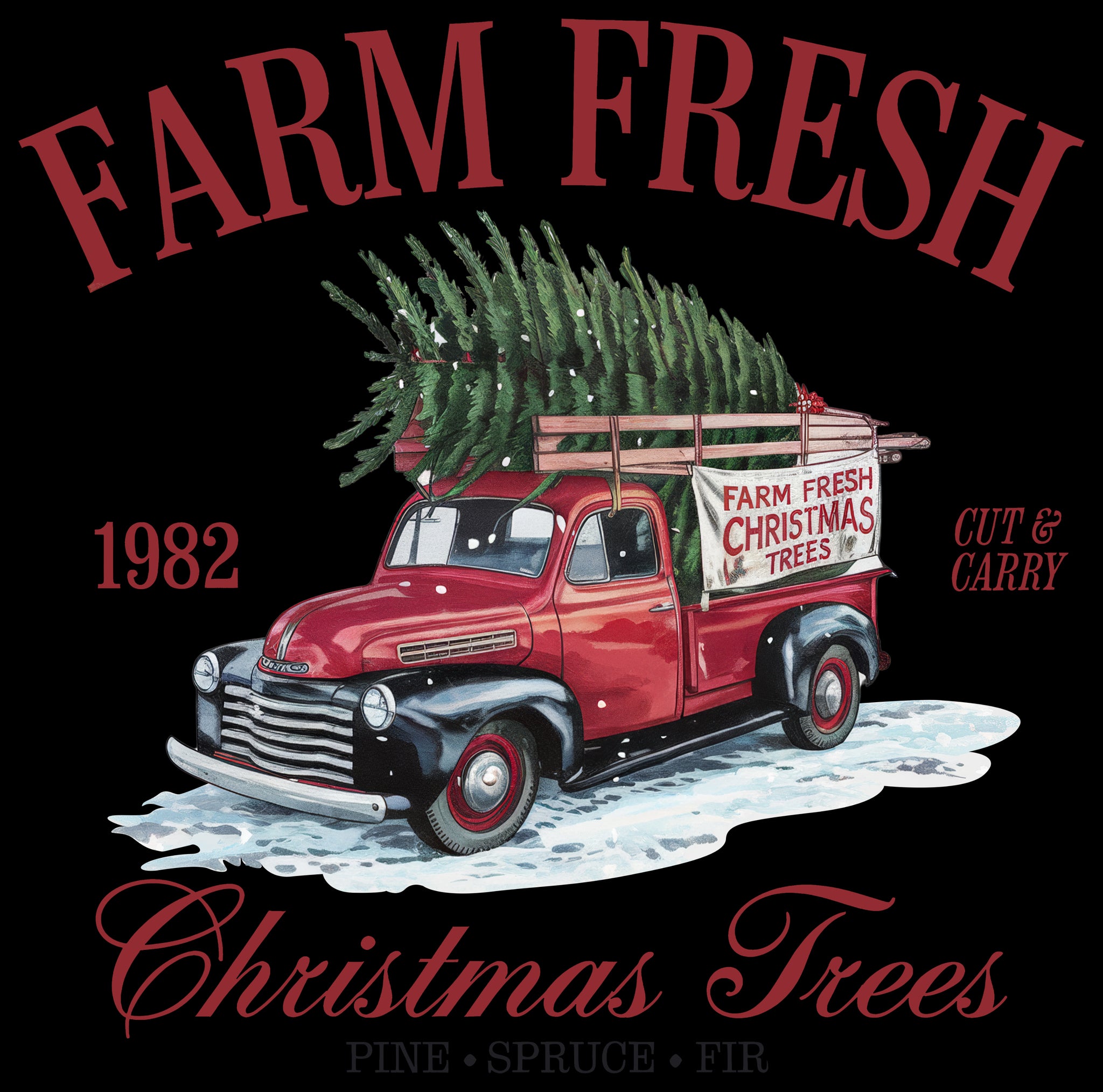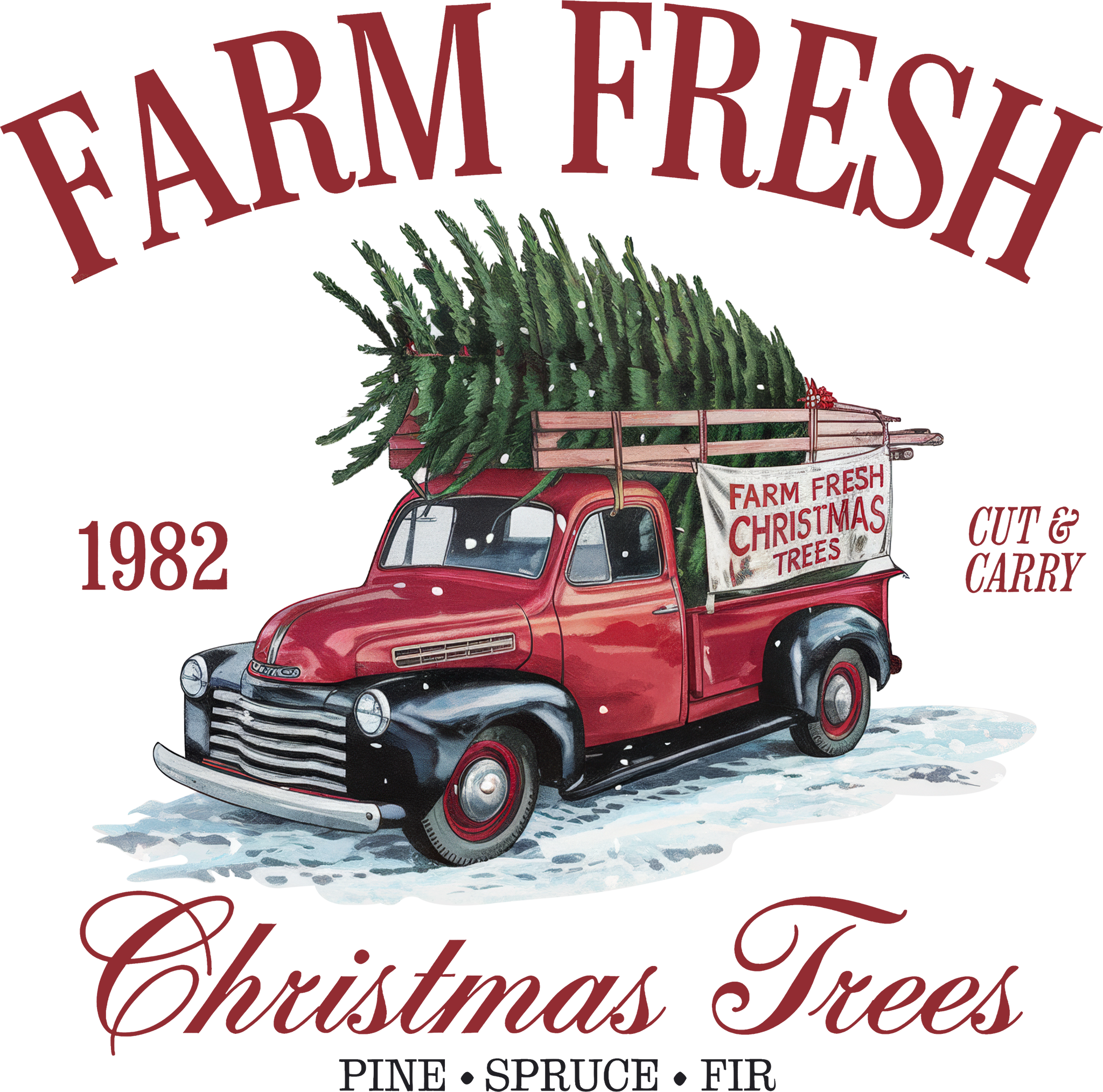 Bring vintage farmhouse charm to your next project with this Farm Fresh Christmas DTF Transfer. Featuring a classic red pickup loaded with freshly cut evergreens, this design captures the warm nostalgia of country Christmas mornings. Perfect for cozy tees, market displays, boutique holiday drops, and rustic seasonal collections.