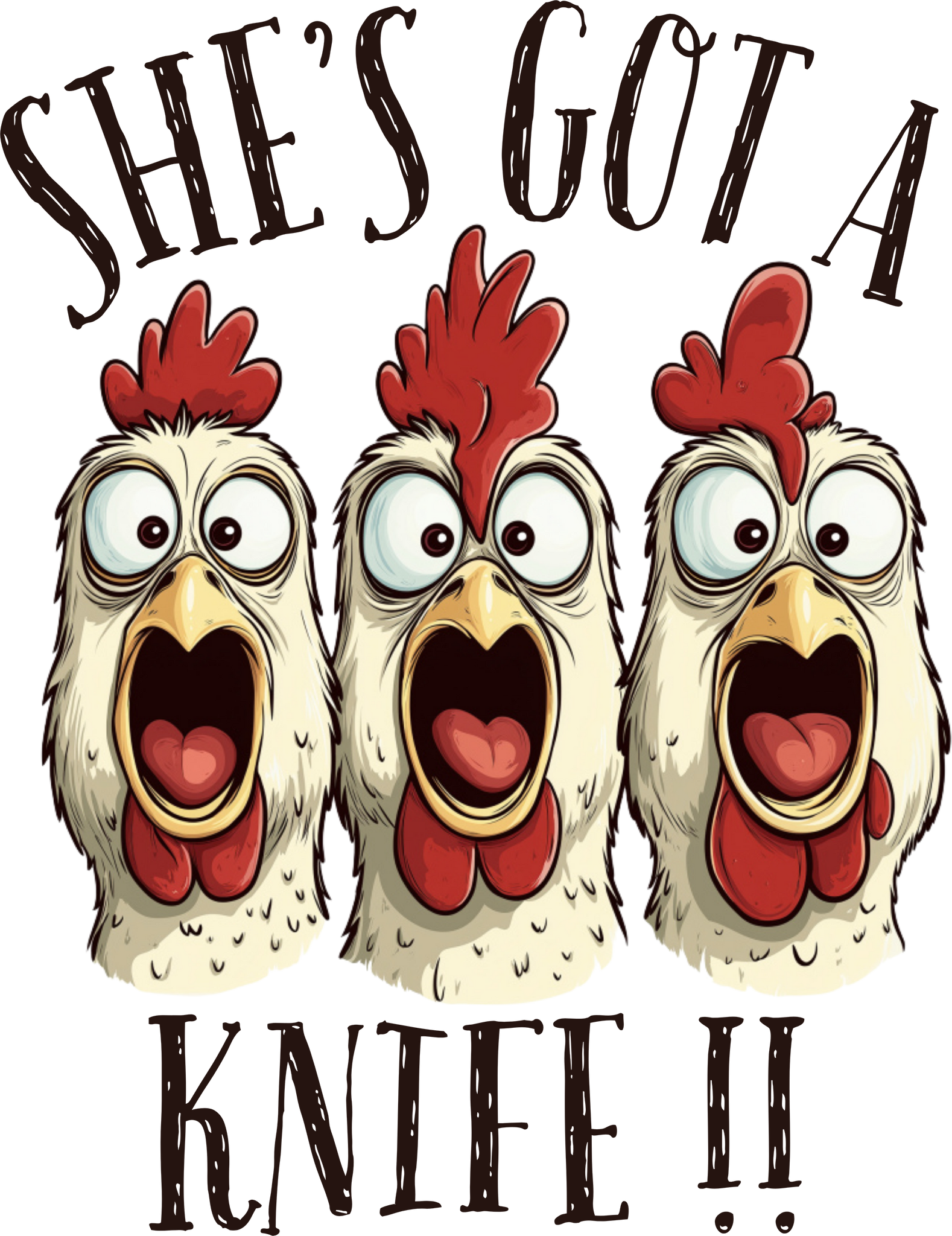 Transform your seasonal product line with this Chicken Faces "She's Has a Knife" DTF Transfer, a versatile direct-to-film solution engineered for holiday and year-round merchandise. Available in multiple sizes, this transfer delivers vibrant, detailed imagery that adheres seamlessly to cotton, cotton blends, and polyester garments. The design features bold, eye-catching graphics with excellent color saturation and durability through repeated washing and wearing. DTF transfers eliminate the need for screen setup, making them ideal for on-demand production, custom orders, and small batch runs. Simply print, cure, and press onto your substrate for professional results every time. Perfect for t-shirts, hoodies, tote bags, and other apparel applications, this transfer combines efficiency with premium output quality, allowing you to expand your product offerings without significant equipment investment.