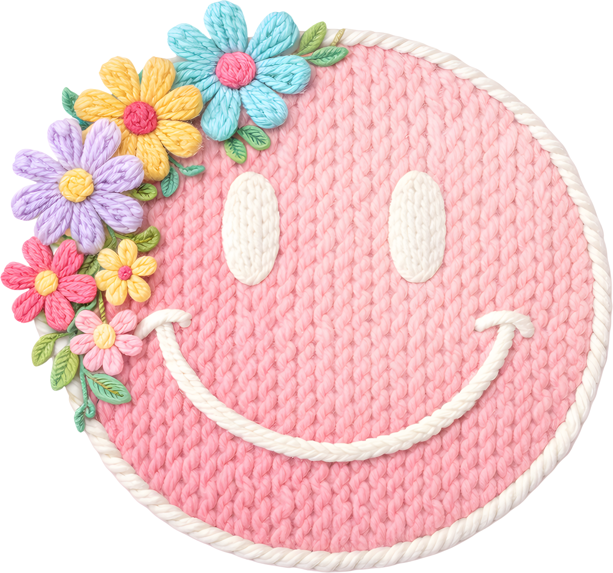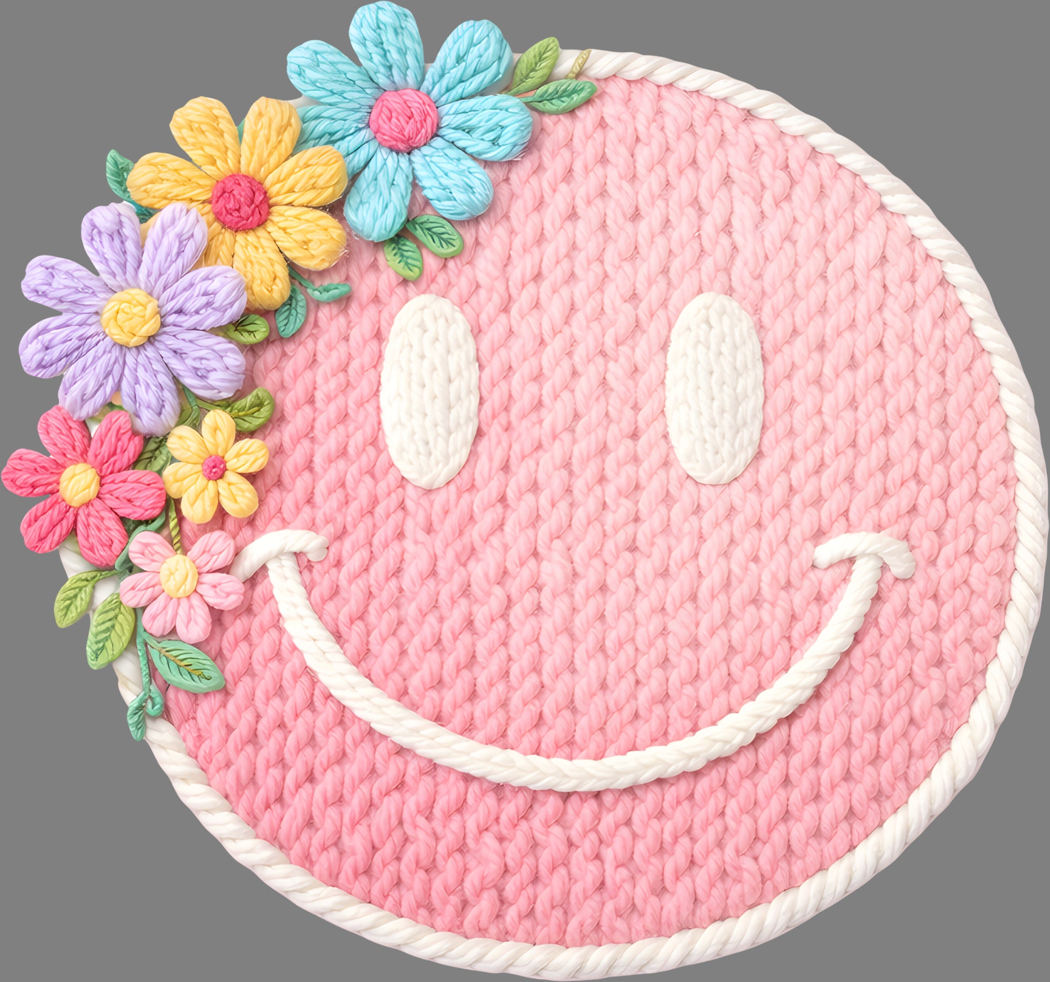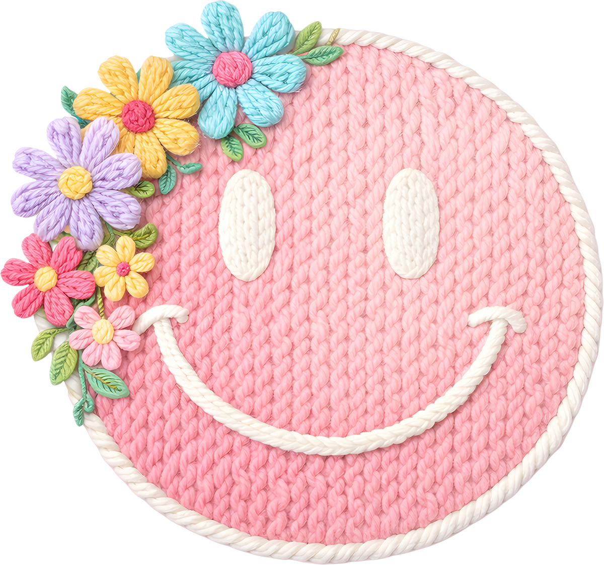 Enhance your apparel collection with this sophisticated DTF Transfer showcasing a charming Yarn Flower smiley face design, powered by advanced Direct-to-Film technology. Delivering brilliant color saturation and outstanding wear resistance, this transfer performs reliably across various garment types and fabric compositions, guaranteeing professional-grade quality with every application.