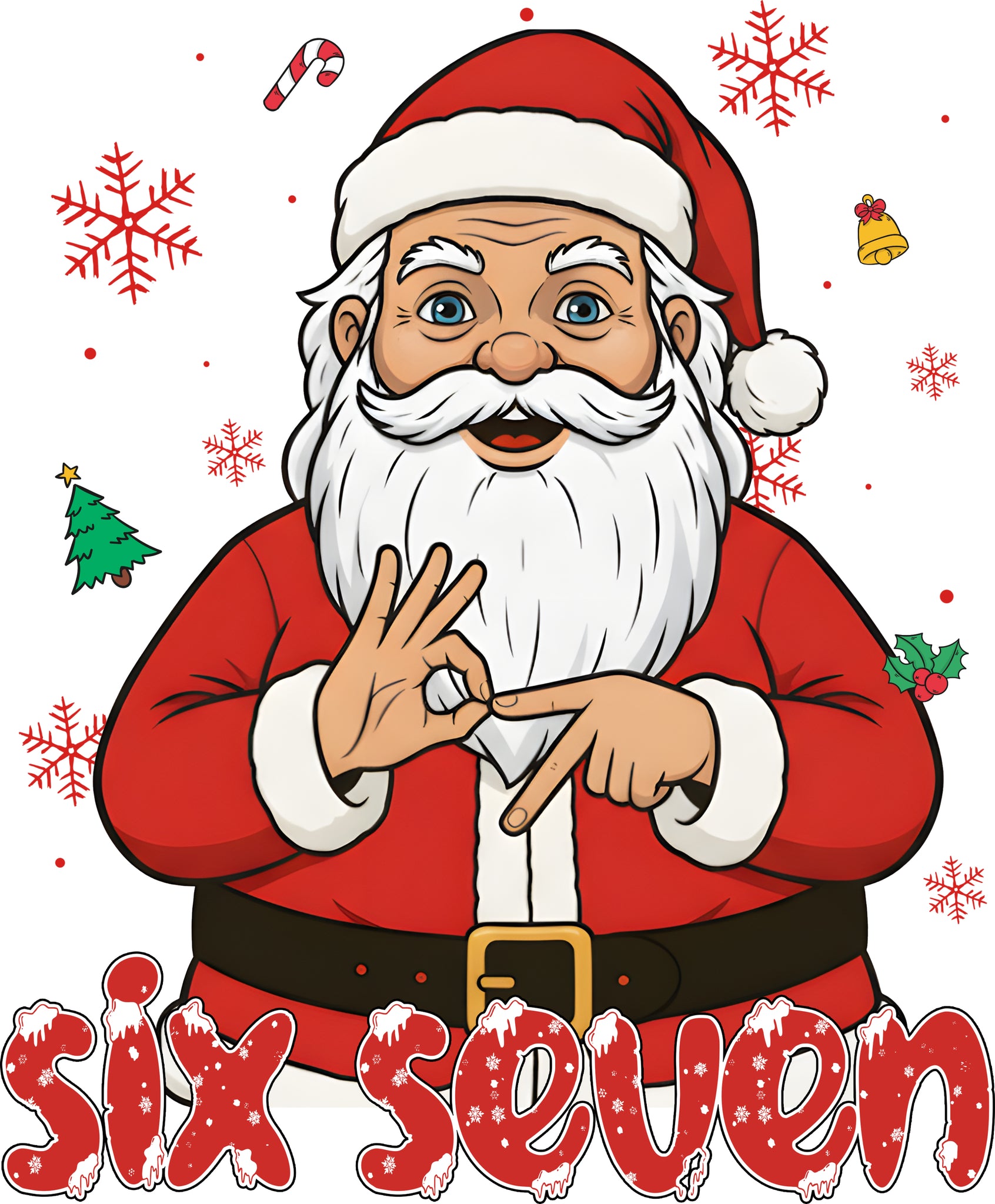 Add a bold and playful twist to your holiday lineup with this Santa Six Seven DTF Transfer! Featuring vibrant colors, a modern Santa, and the crowd-favorite “six seven” caption, this design is perfect for holiday parties, matching family shirts, market-season drops, and small business merch.