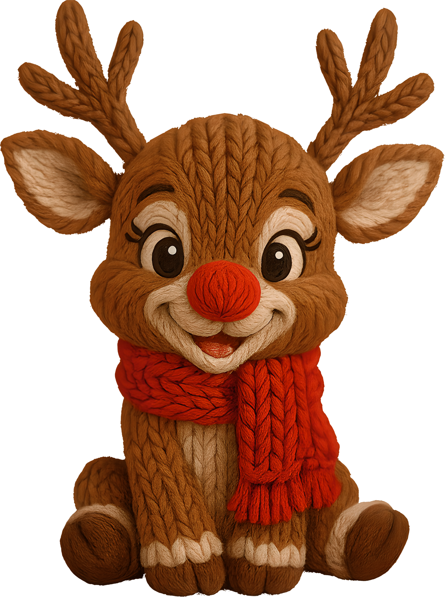 Featuring a soft, knitted-style reindeer with a bright red nose and a festive winter scarf, this design adds the perfect mix of cozy texture and Christmas spirit. Ideal for holiday markets, boutique drops, family shirts, and festive gifts.